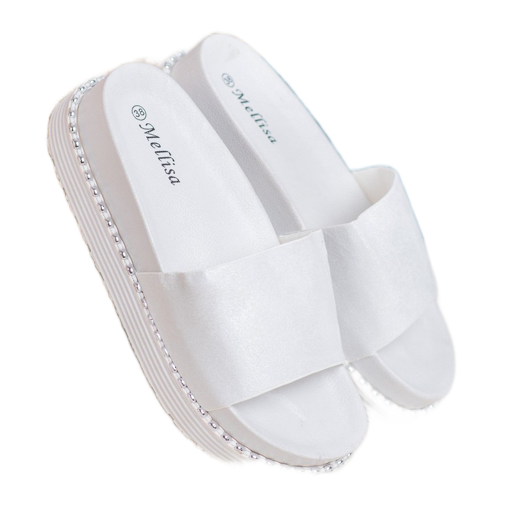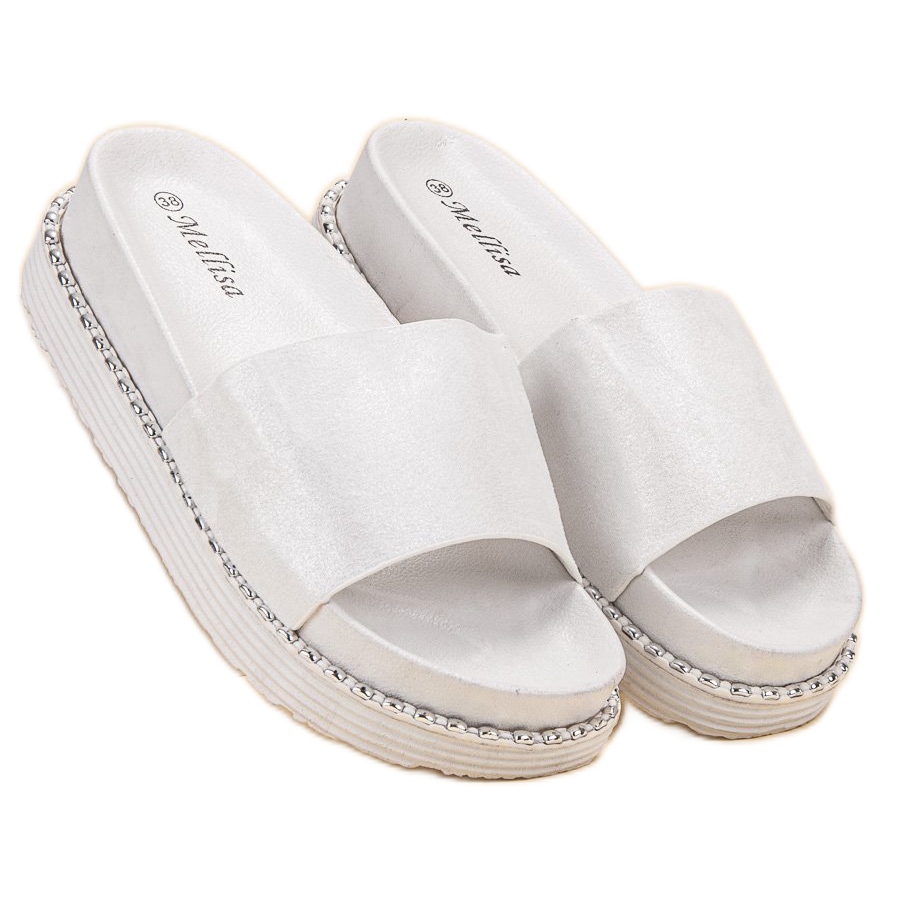Les tongs Melisa Wedge en blanc sont le choix parfait pour les femmes qui apprécient la combinaison de style et de confort. Ces charmantes tongs se distinguent par un cuir écologique, qui assure un confort de port, et une semelle en caoutchouc avec bande de roulement, qui garantit la stabilité à chaque pas.