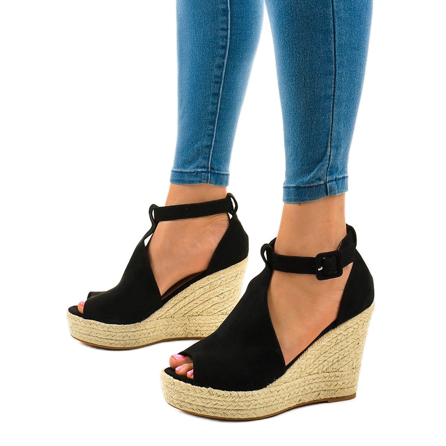 Détails: BM Sandales compensées noires à espadrilles 108-11 le noir