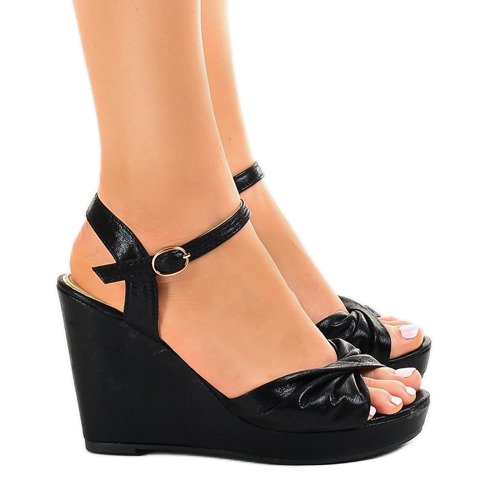 Détails: Sandales compensées noires brillantes JM-M215M le noir