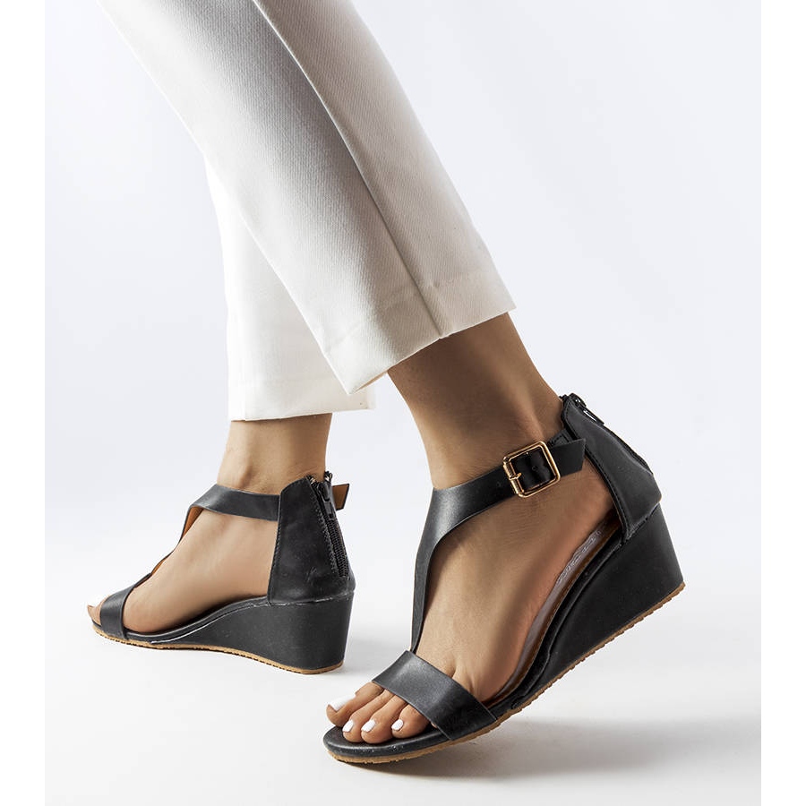 Détails: Sandales compensées noires de Durepos