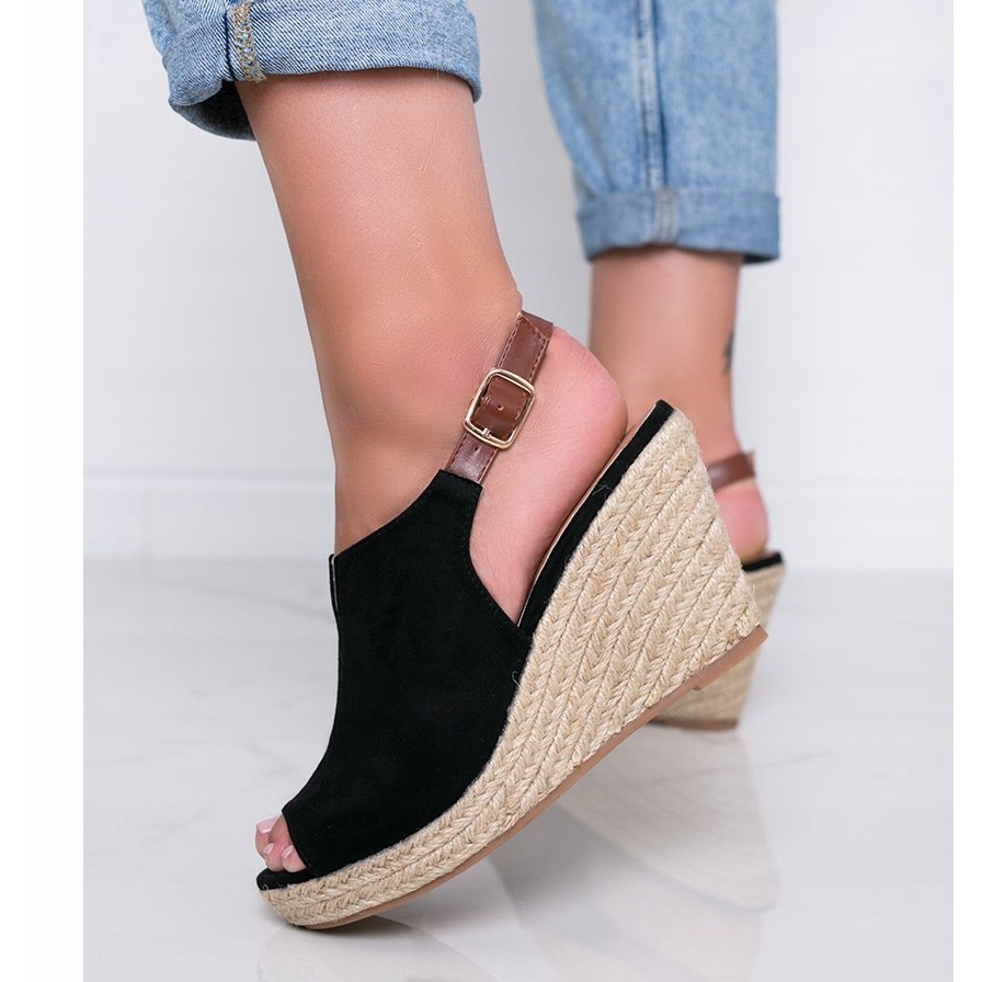 Les sandales compensées noires Lindy sont le choix parfait pour les femmes qui souhaitent allier élégance et confort. Fabriquées en cuir suédé écologique de haute qualité dans une couleur noire intemporelle, ces sandales ajouteront un charme féminin à tout style estival. Un design tendance avec un devant intégré et une découpe élégante sur le devant, associé à des cales, non seulement met en valeur visuellement la silhouette, mais assure également un confort de marche grâce à une plateforme de 9,5 cm de hauteur.