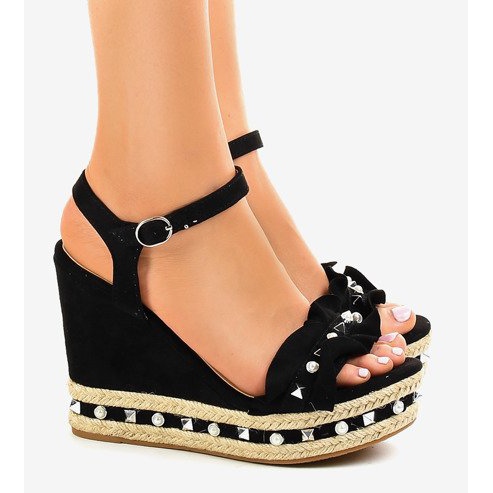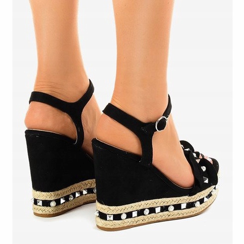 Les sandales compensées en perles noires 2445 sont un choix élégant pour les femmes qui apprécient le style et le confort. Fabriquées dans un matériau semblable à du daim de haute qualité, ces sandales attireront certainement l'attention. Leur design sans motif leur donne un aspect extrêmement élégant et des décorations supplémentaires sous forme de strass et de clous leur confèrent un caractère moderne.