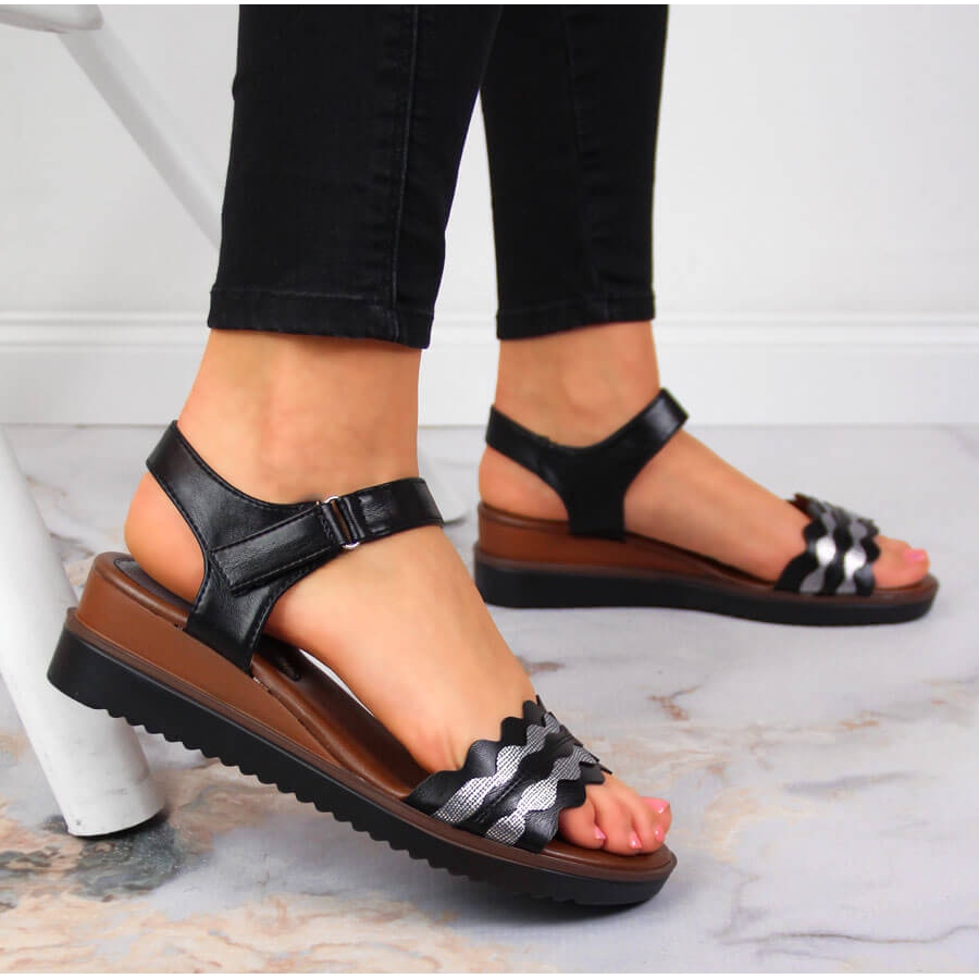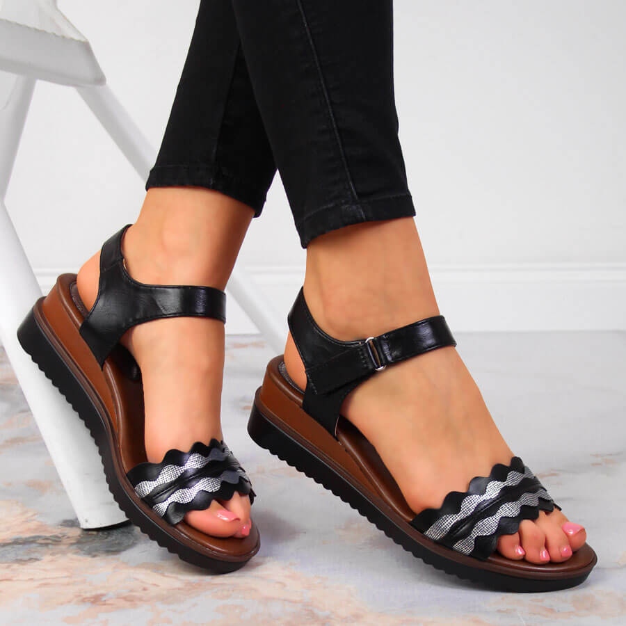 Détails: Sandales compensées noires pour femme Jezzi le noir