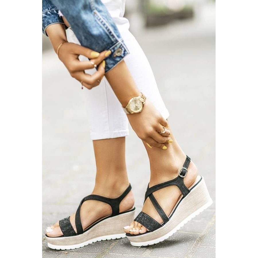 Une cale de 7 cm de haut avec une plateforme supplémentaire de 4,5 cm garantit stabilité et confort tout au long de la journée, et de subtils strass et strass leur confèrent un caractère unique. Ces sandales sont disponibles en numéros standards et disposent d'une fermeture à boucle, qui permet un ajustement parfait au pied.