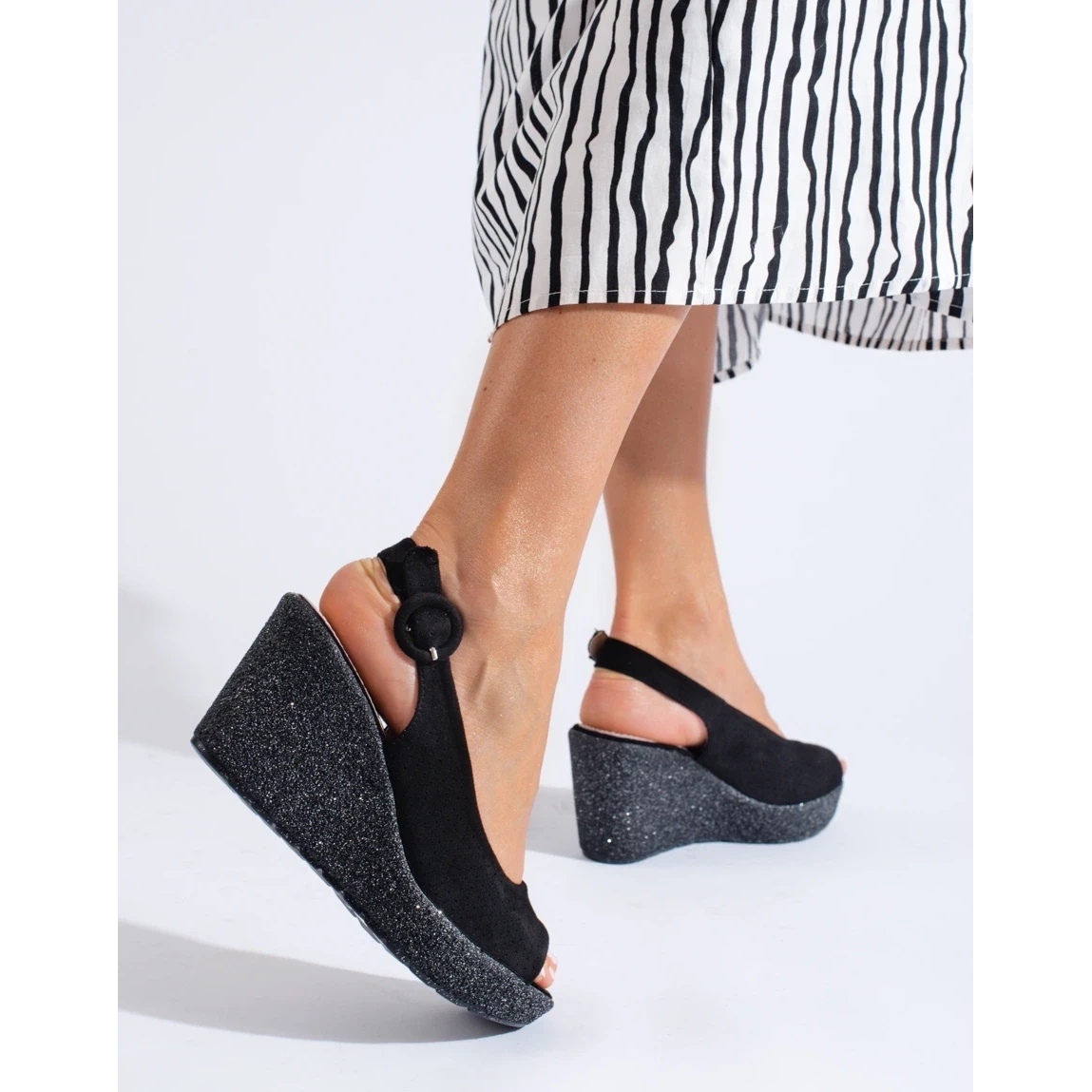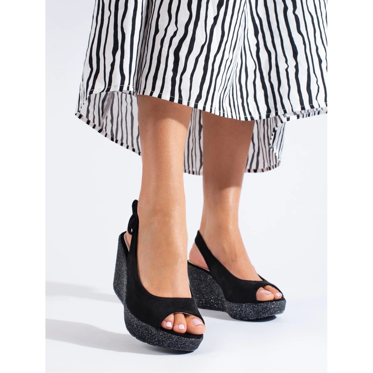 Détails: Sandales compensées noires Shelovet, femmes le noir