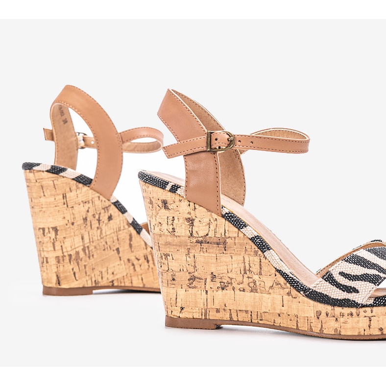 Les sandales compensées ouvertes Veronica dans les tons beige et marron sont le choix parfait pour toutes les femmes qui souhaitent ajouter un peu d'élégance et d'originalité à leur style. Ce modèle unique se distingue par un motif zèbre qui attire le regard et confère à l'ensemble un caractère mode.