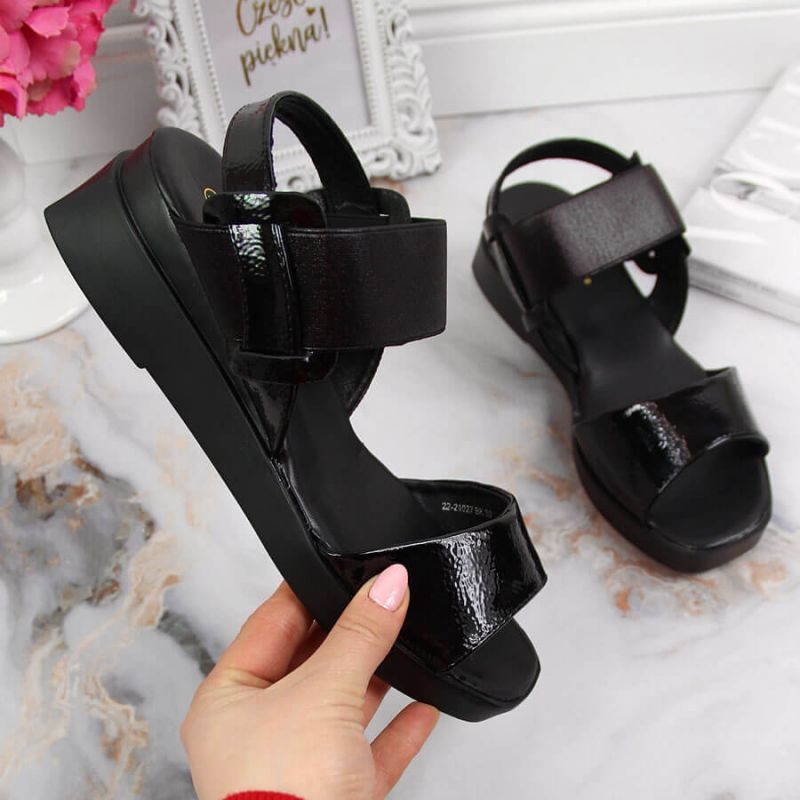 Les sandales de plate-forme noire classiques dans le WOL75A sont une proposition pour les femmes qui apprécient le confort et le style universel. La plate-forme légèrement élevée (5 cm) assure la stabilité et l'allongement optique des jambes, et la fixation du fermeture scratch rend les sandales faciles et rapides à mettre.