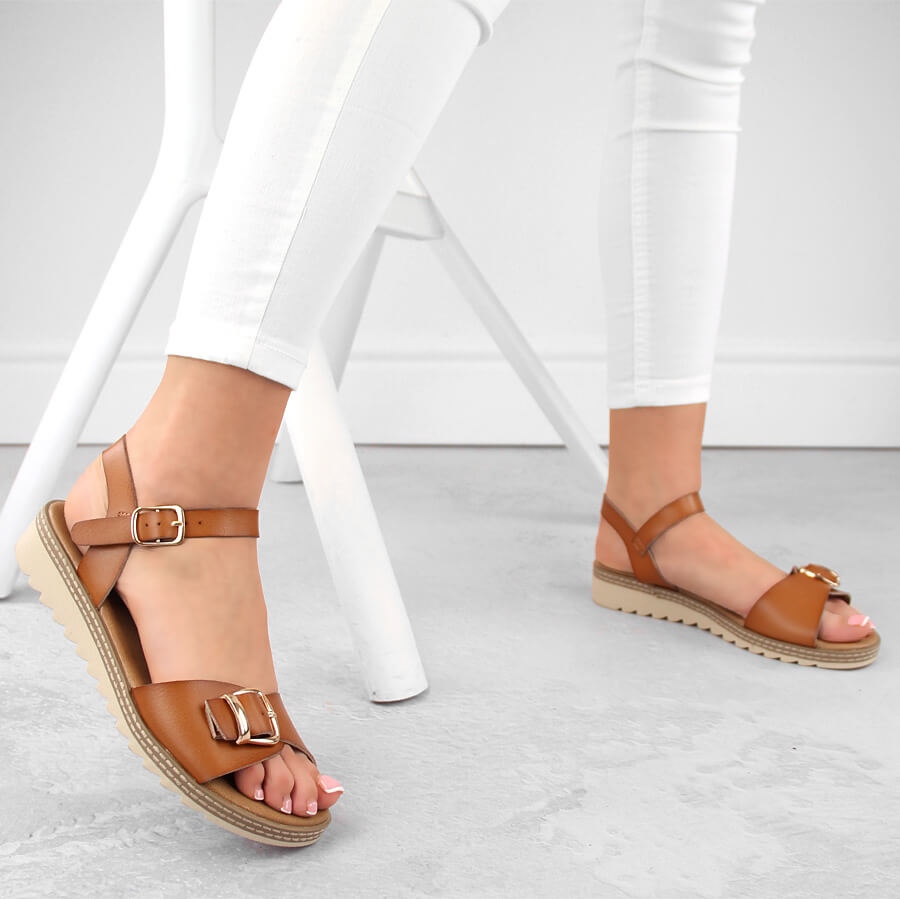 Les sandales sont dotées d'une boucle qui leur ajoute non seulement une élégance subtile, mais permet également un ajustement parfait au pied. Avec une cale de 3,5 cm de haut, ce modèle soulève doucement la silhouette tout en assurant stabilité et confort, ce qui en fait le choix parfait pour toutes les occasions, des promenades décontractées aux sorties semi-formelles.
