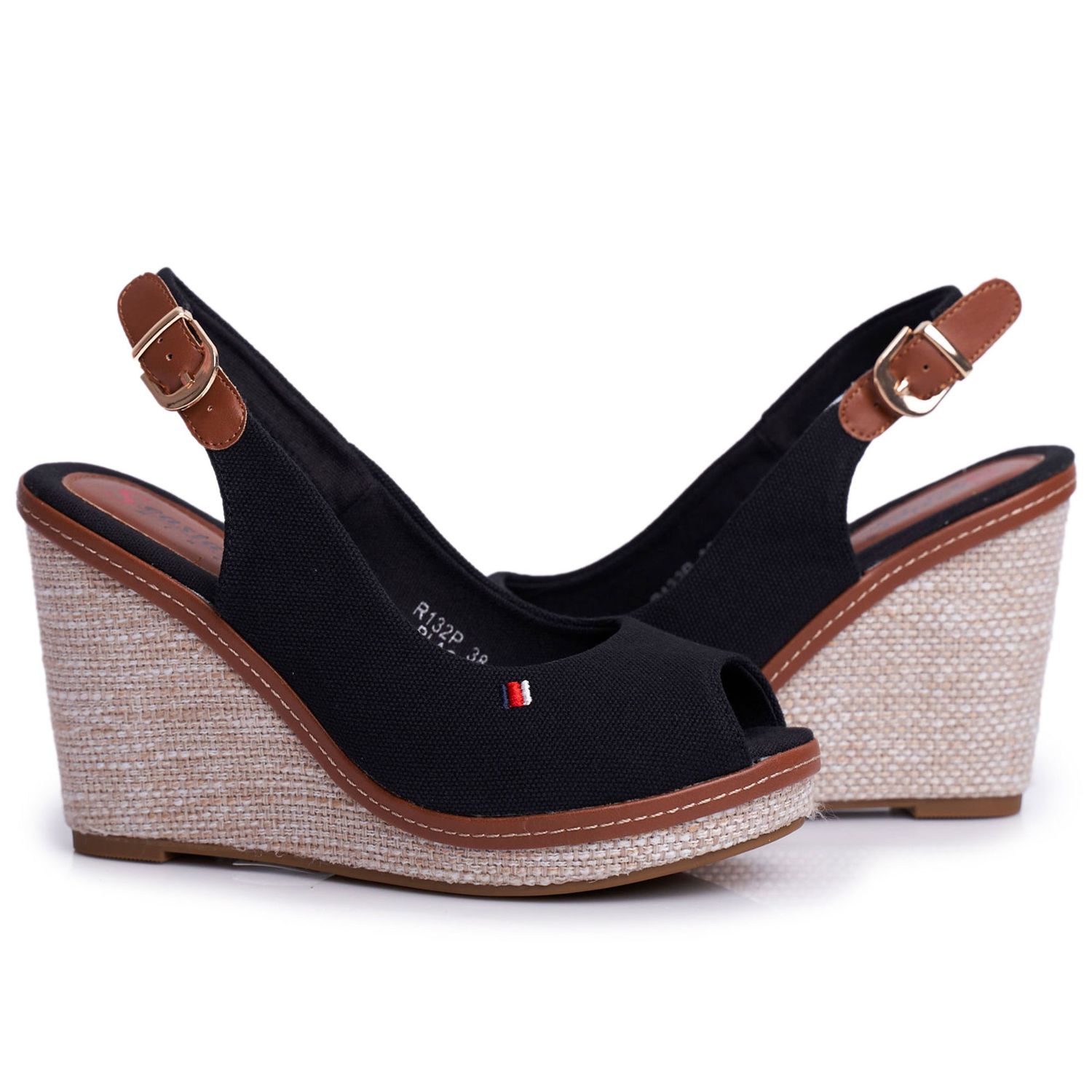 Détails: SEA Sandales compensées pour femmes Noir Tommy