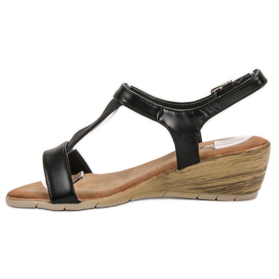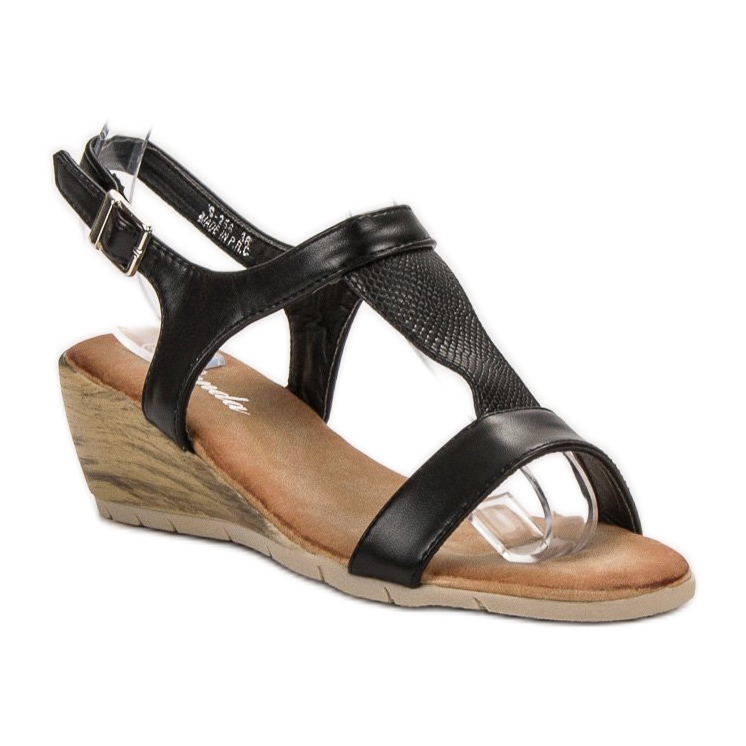 Les sandales compensées noires de Renda sont le choix parfait pour les journées d'été où vous voulez vous sentir élégante et confortable. Fabriquées en éco-cuir de haute qualité, ces chaussures allient élégance et praticité. Le design classique, complété par un talon ouvert et une boucle, permet un ajustement facile au pied, assurant une stabilisation optimale lors du port.