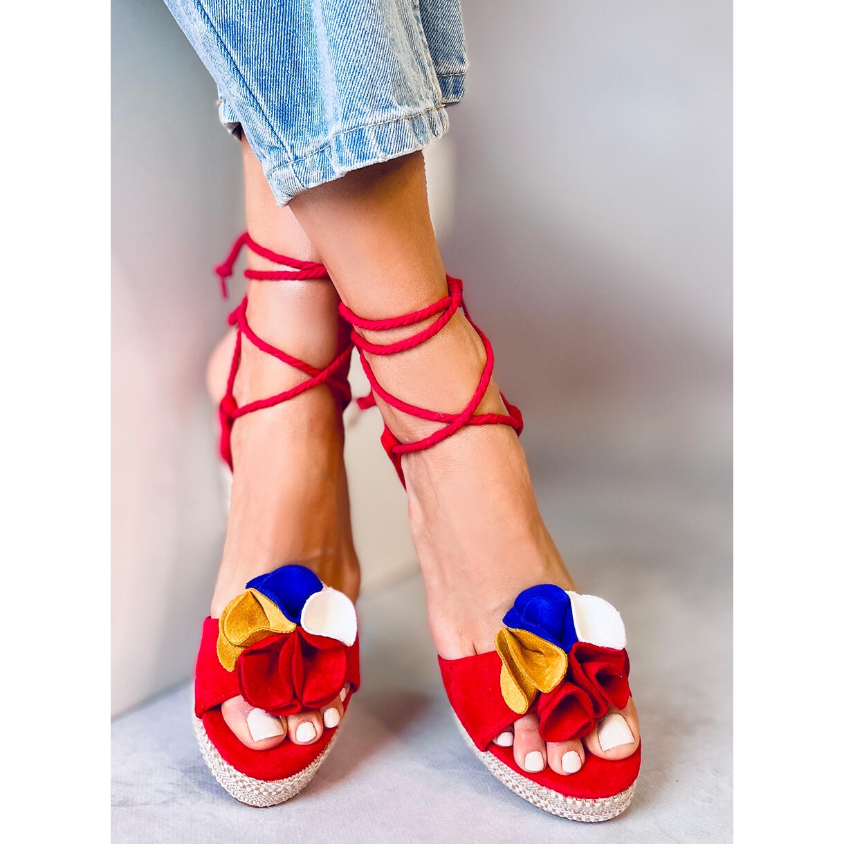 Une cale haute de 11 cm et une plateforme de 3,5 cm allongent non seulement optiquement les jambes, mais assurent également stabilité et confort au porté. Les sandales sont fabriquées en daim écologique, ce qui les rend à la fois respectueuses de l'environnement et visuellement attrayantes. Les fleurs décoratives aux couleurs les plus en vogue cet été soulignent leur caractère unique et ajoutent une touche romantique.