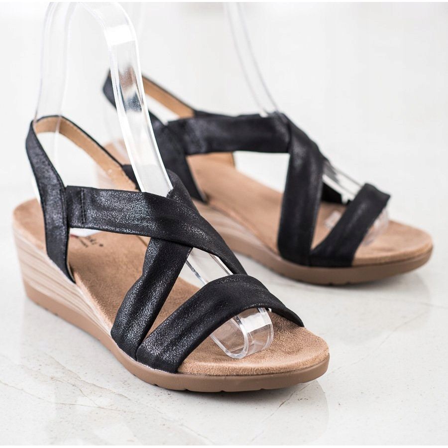 Découvrez un confort et un style exceptionnels avec les sandales compensées à enfiler du fabricant S. BARSKI. Ces élégantes sandales noires sont un choix parfait pour les femmes qui apprécient la combinaison du design à la mode et du confort.