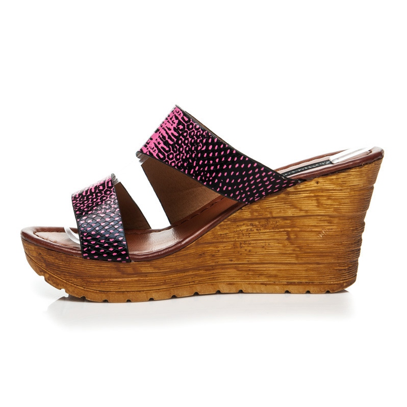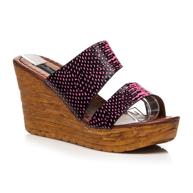 Découvrez le style et le confort en un avec les mules compensées de Sergio Todzi dans une élégante combinaison de noir et de rose. Ces tongs uniques sont un choix parfait pour les femmes qui souhaitent ajouter un peu de chic à leur style de tous les jours sans sacrifier le confort.