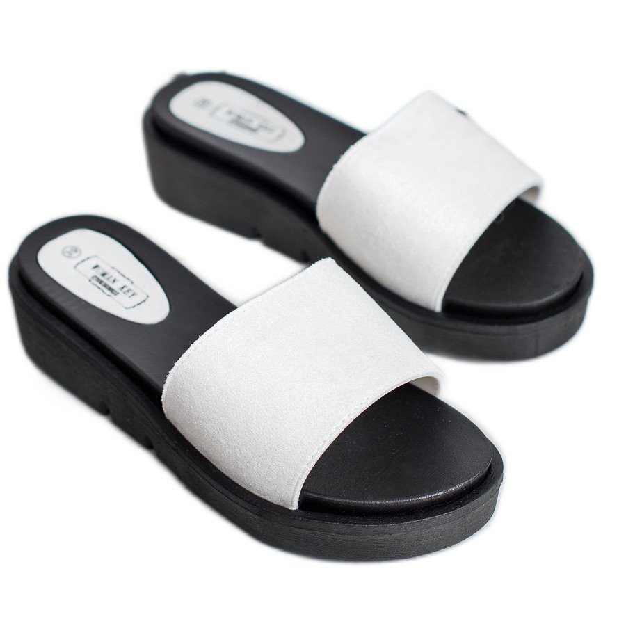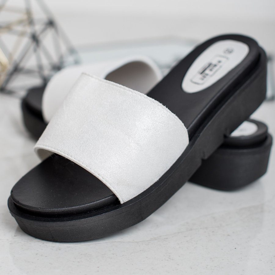 Vous cherchez les tongs parfaites pour les journées chaudes ? Les mules compensées de SHELOVET sont un choix parfait pour toutes les femmes qui souhaitent allier confort et élégance. Fabriquées en daim écologique, ces tongs blanches à la coupe classique sont extrêmement stylées et s'adaptent parfaitement aux tendances printemps-été.