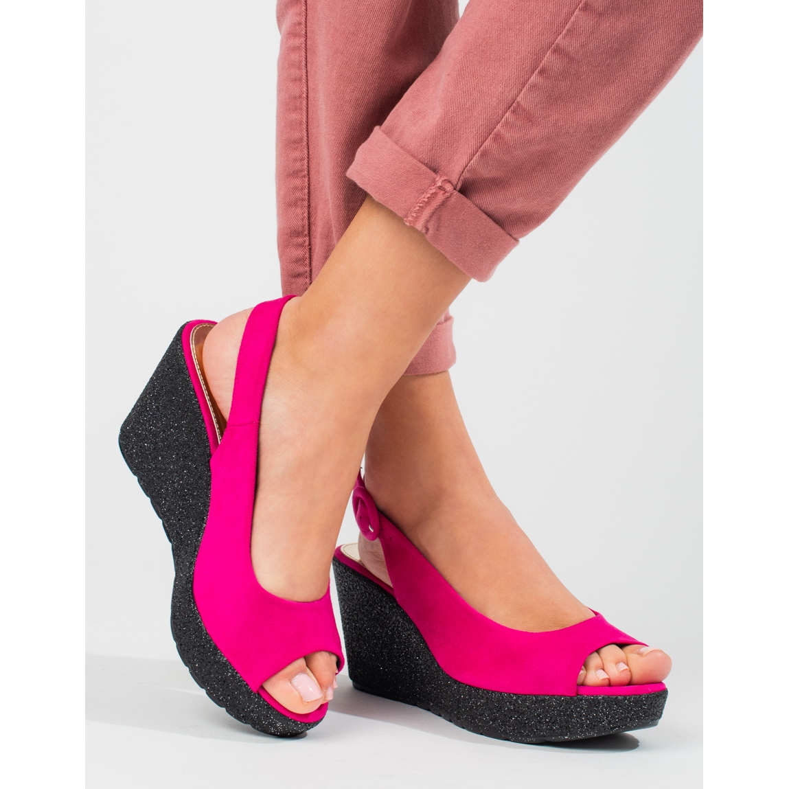 Détails: Sandales compensées Shelovet roses légères pour femmes