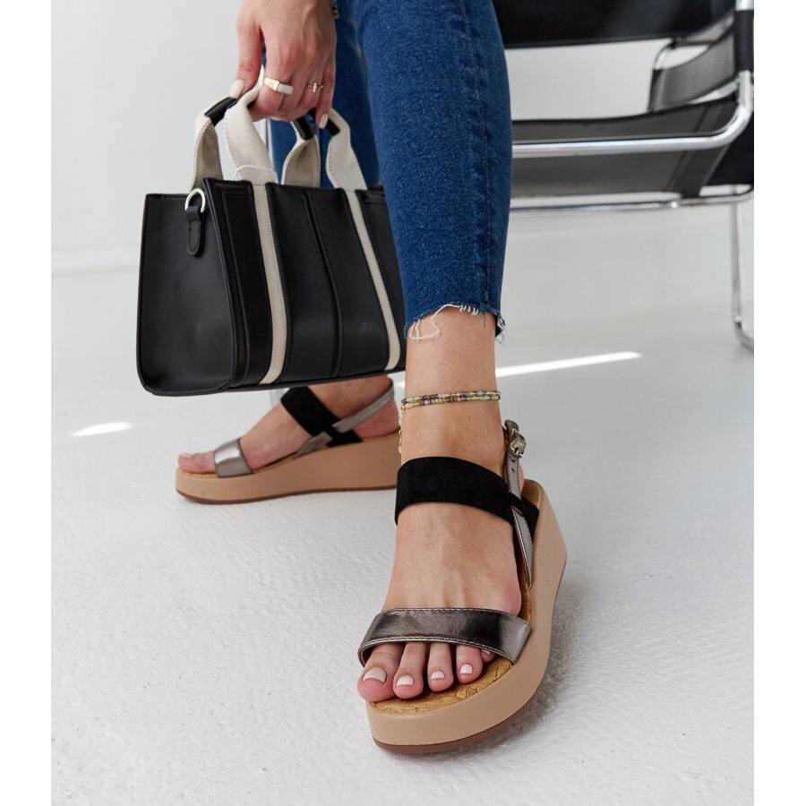Les sandales compensées noires sont la combinaison parfaite d'élégance et de confort, parfaites pour les chaudes journées d'été. Ils sont élégants grâce à la couleur noire et aux accents marron sur la semelle, ajoutant un peu de chic à n'importe quel style. Le modèle 2488 se caractérise par une forme classique qui s'adapte à presque toutes les tenues, des robes d'été amples aux ensembles plus formels.