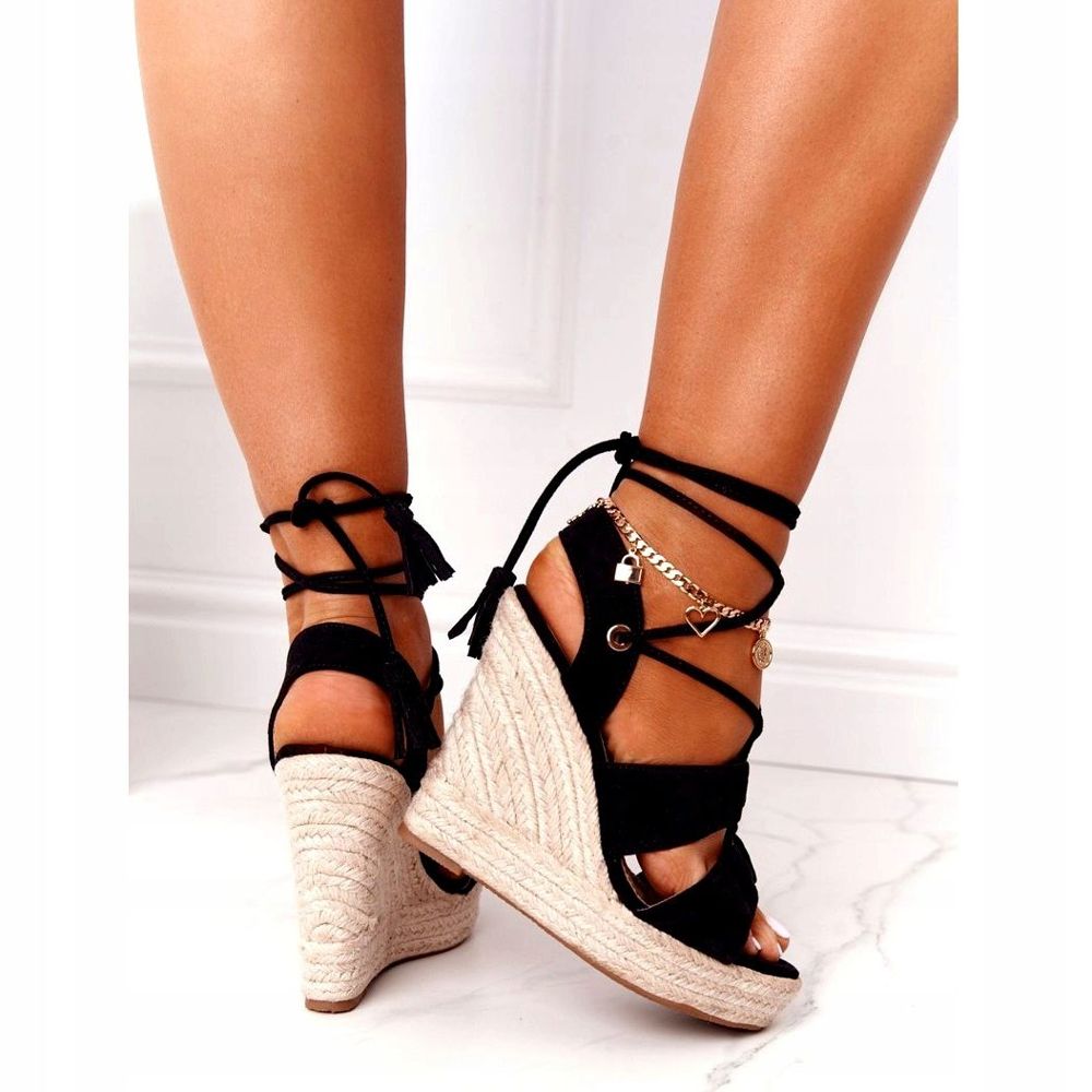 Ces espadrilles compensées classiques sont disponibles dans une couleur noire élégante qui s'adapte à de nombreux styles. La hauteur de la cale est de 12,5 cm, ce qui met joliment en valeur les pieds et les rend plus fins.