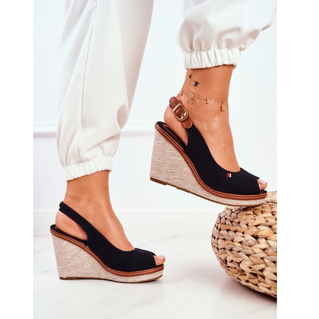 Détails: PS1 Sandales compensées tressées noires Tommy le noir