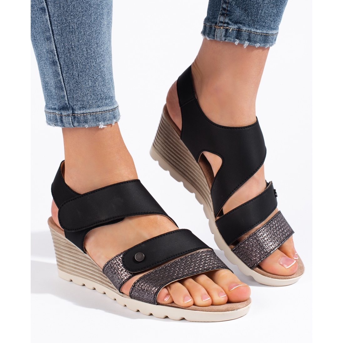 Découvrez l'élégance et le confort avec les sandales compensées à fermeture scratch pour femmes d'Inna Marka. Ces sandales noires classiques sont le choix parfait pour une variété d'occasions : des soirées aux célébrations en passant par les sorties quotidiennes. Leur design minimaliste les rend parfaitement adaptés à un style élégant et décontracté.