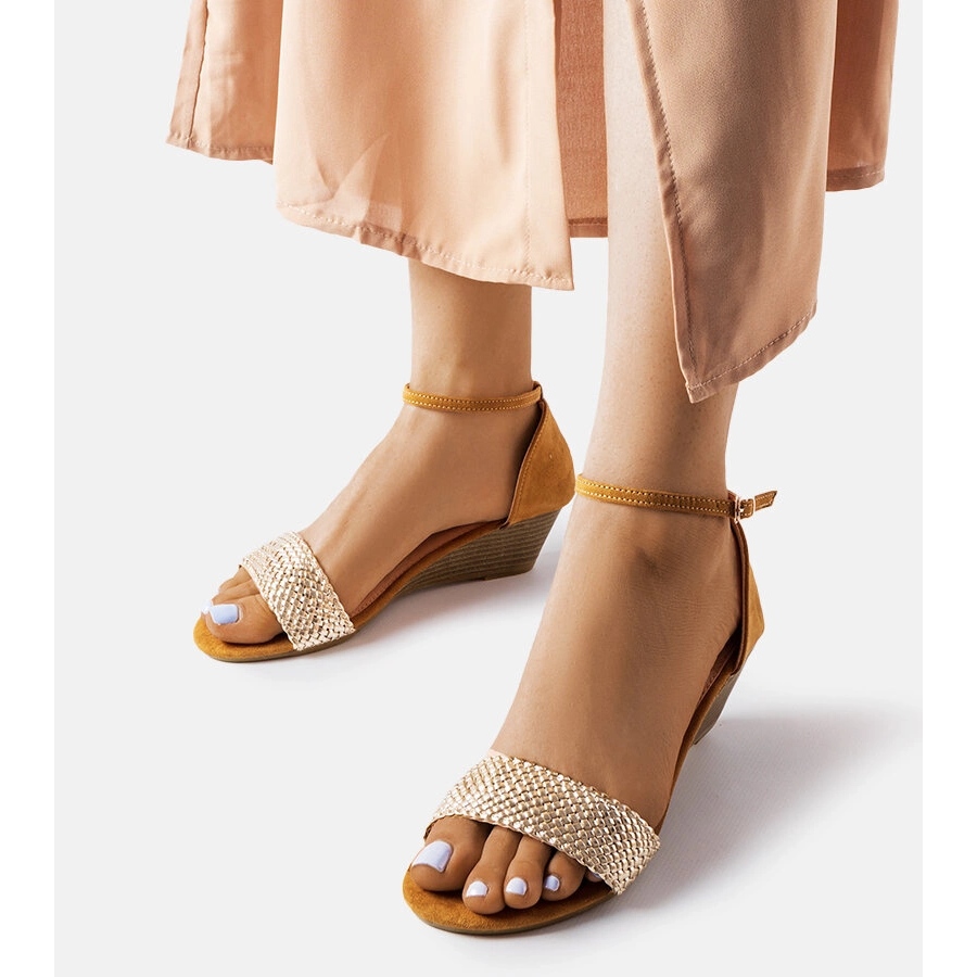 La palette de couleurs se compose de nuances d'or et de marron, ce qui leur permet d'être facilement combinées avec diverses tenues d'été. La semelle en plastique garantit durabilité et confort lors de la marche. Les sandales sont disponibles avec une numérotation standard, ce qui facilite leur adaptation à vos besoins individuels.