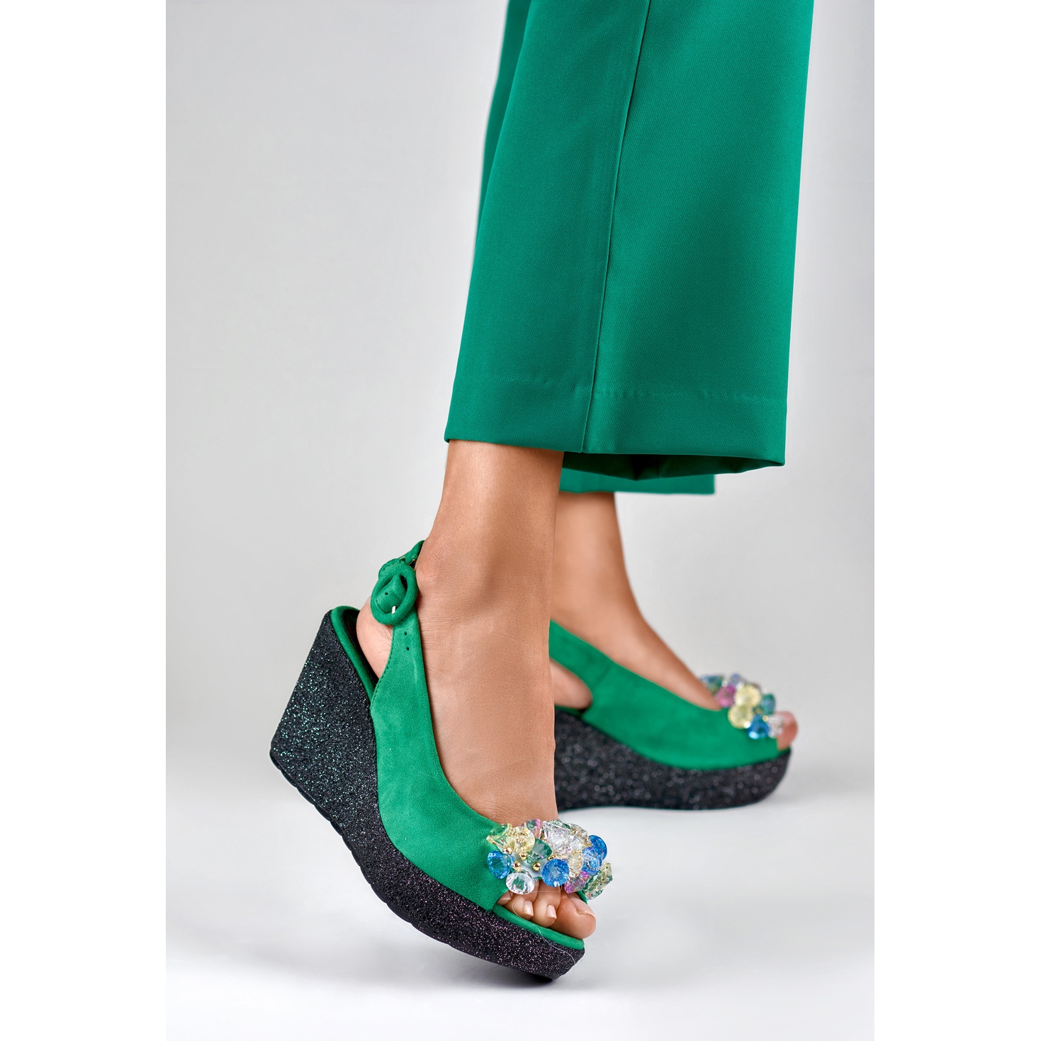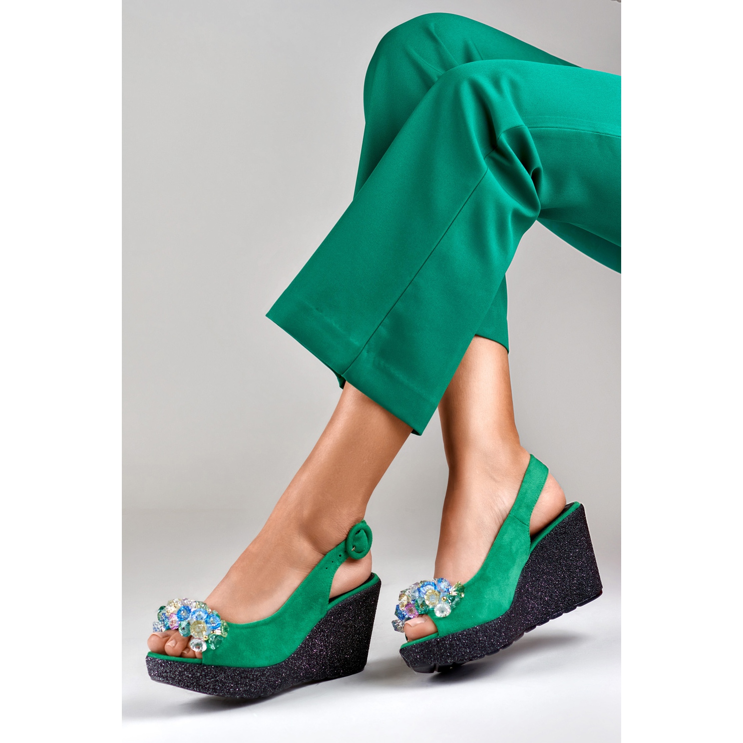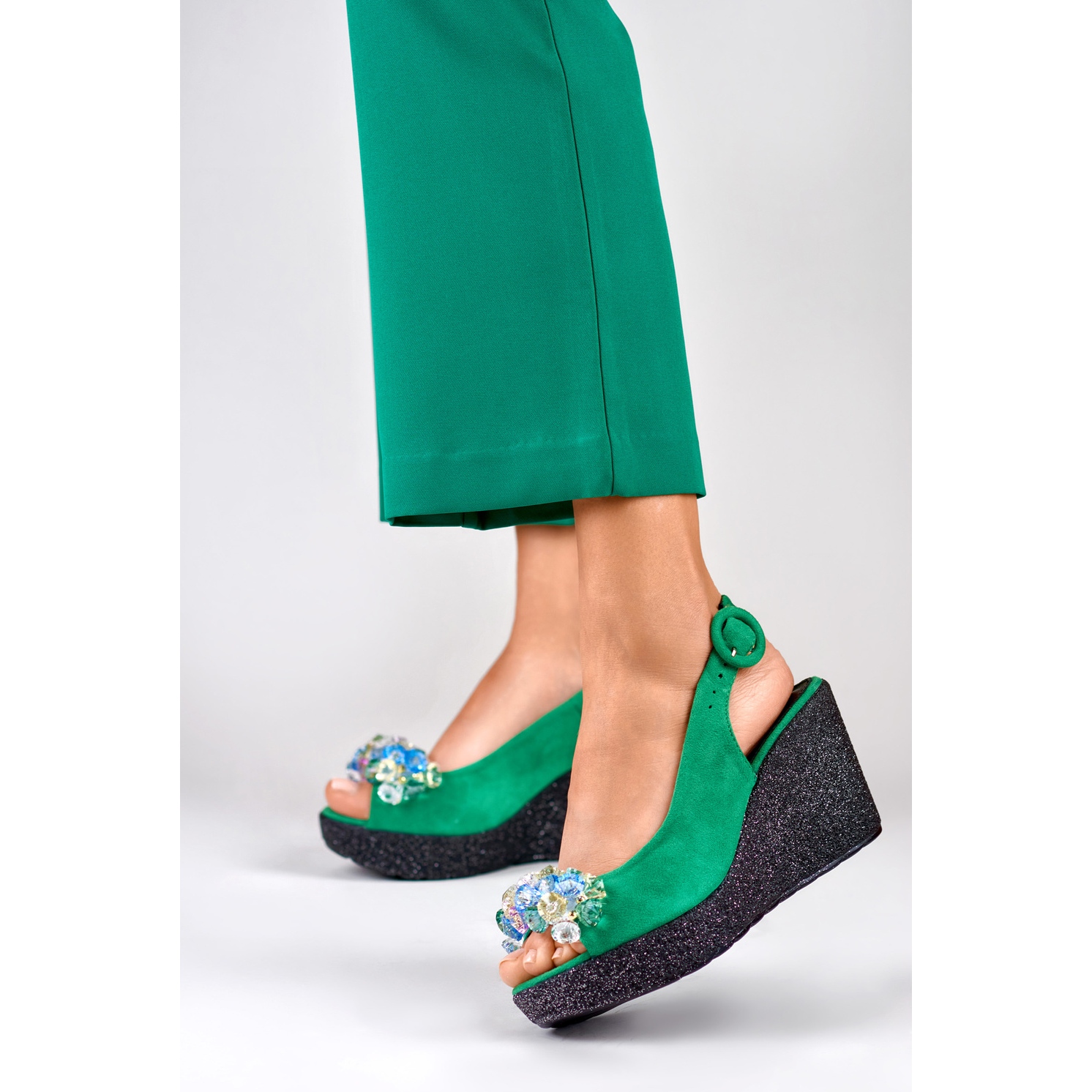 Les sandales compensées vertes avec perles de la collection KeeShoes sont une proposition pour les femmes qui apprécient le style et le confort. Ne tardez pas, rendez votre été encore plus coloré et plein de fantaisie avec cet accessoire unique !