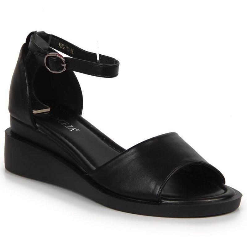 Découvrez le dernier modèle de sandales compensées Vinceza W JAN102A dans une couleur noire classique, qui sera un complément parfait à tout style estival. Fabriquées en cuir écologique de haute qualité, ces sandales allient élégance et confort. La tige et la semelle intérieure sont constituées de matériaux synthétiques et de cuir naturel, ce qui assure non seulement un aspect esthétique, mais aussi un confort même pendant une longue journée.