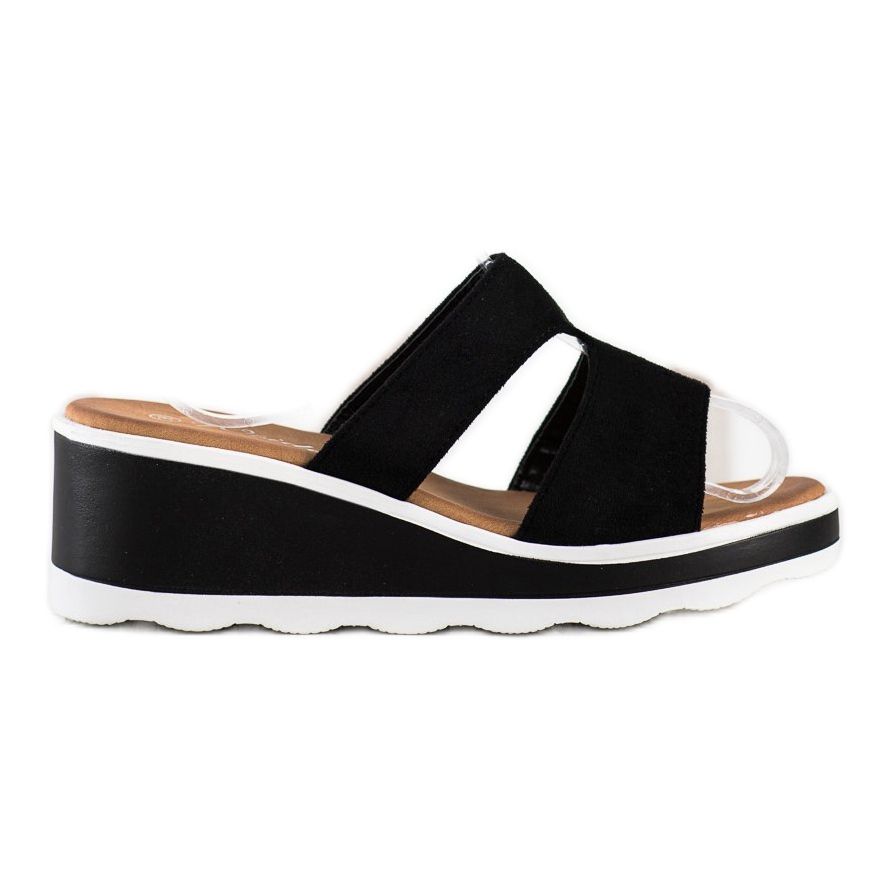 Découvrez un confort et un style extraordinaires avec les sandales compensées Weide dans une élégante couleur noire. Ces chaussures décontractées pour femmes sont le choix parfait pour les journées d'été, alliant design tendance et confort de port. Les tongs ont un talon et une pointe ouverts, qui assurent respirabilité et confort, et leur surface est constituée de deux bandes soigneusement reliées qui leur confèrent un caractère moderne.