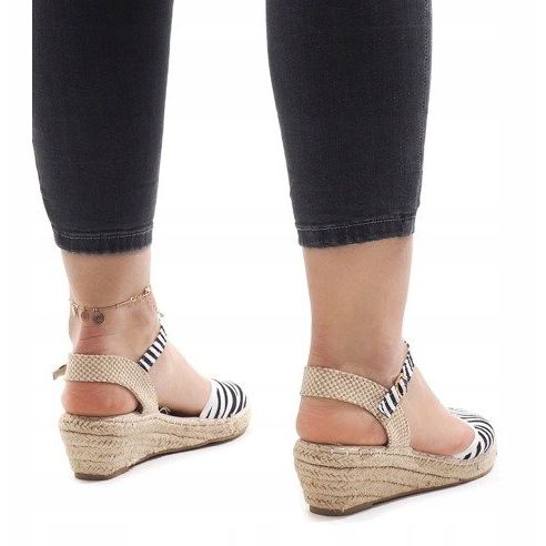 Inna marka Sandales compensées zèbre espadrilles LLI-3M88-7 blanche le noir