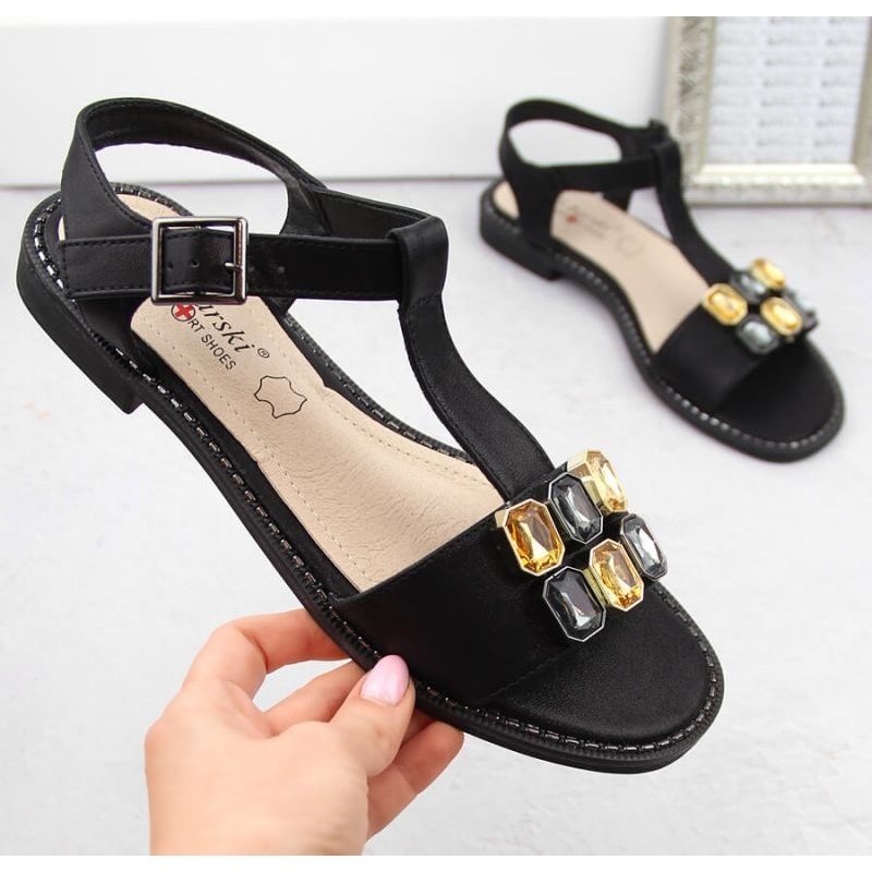 Détails: Sandales confortables avec zircons S.Barski W OLI261A, noir le noir