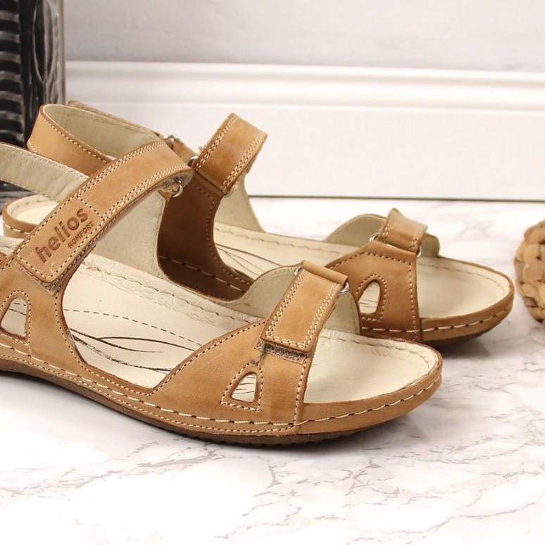 Les sandales Helios 205 féminines élégantes et confortables sont une combinaison de matériaux naturels et de coupe sportive pratique. La tige, la doublure et l'insert en cuir naturel garantissent la douceur, le bon ajustement et la durabilité, et la fixation fermeture scratch réglable vous permet de régler rapidement la largeur autour du pied. La semelle de 3,5 cm d'épaisseur et un talon plat garantissent la stabilité et le confort lors de longues promenades.