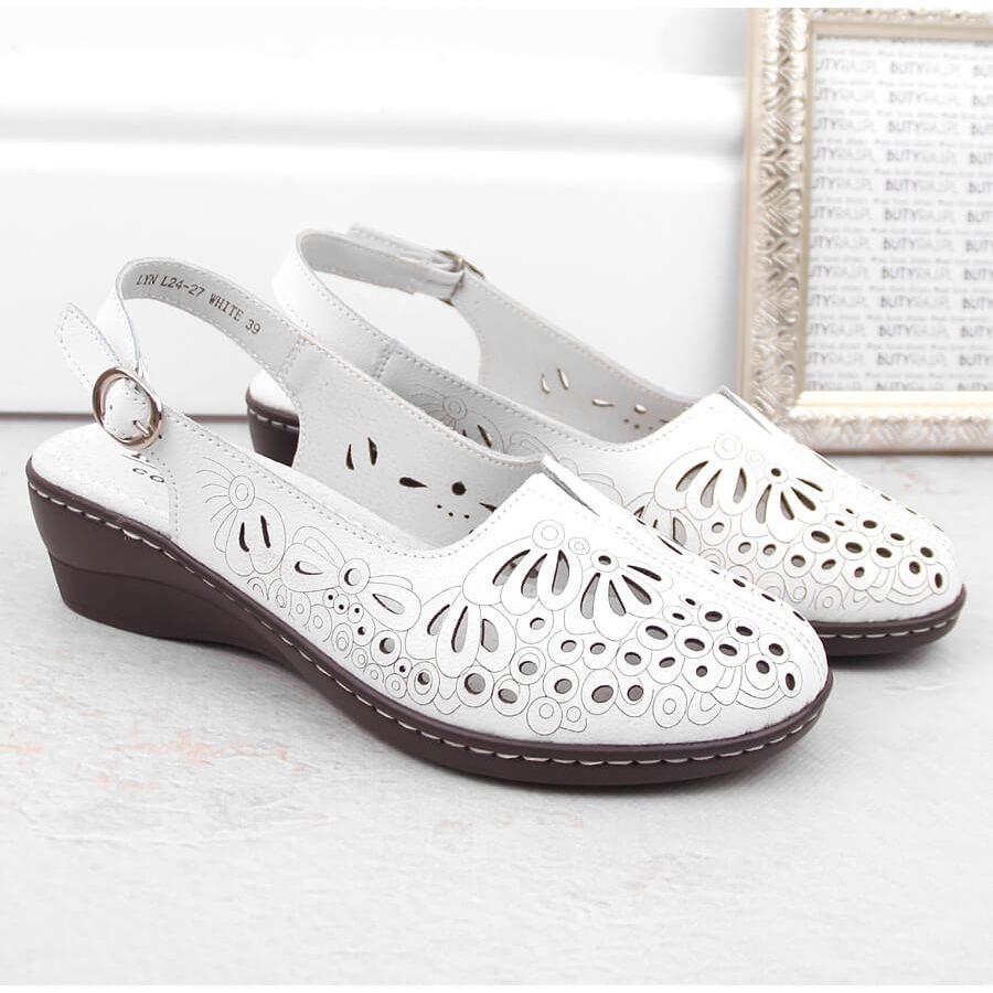 Détails: Sandales confortables en cuir entièrement ajourées pour femmes, blanches, T.Sokolski L24-27