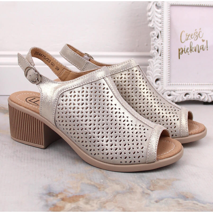 Détails: Sandales confortables en cuir pour femme avec talons dorés Filippo DS4475 d'or