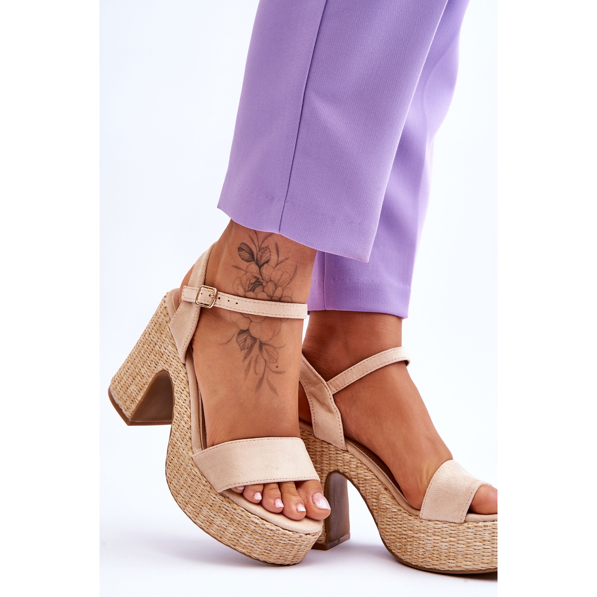 Détails: FI1 Sandales Confortables En Daim Sur Talon Épais Beige Elishia brun