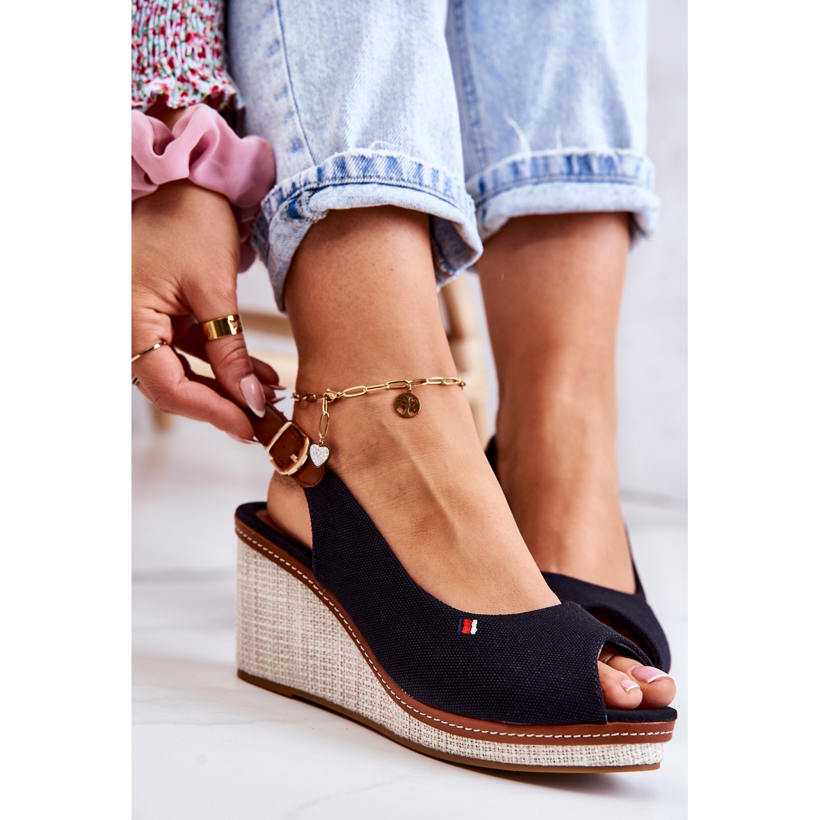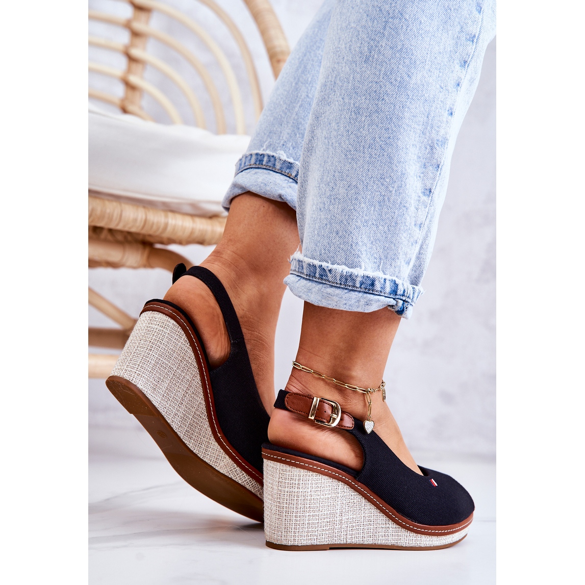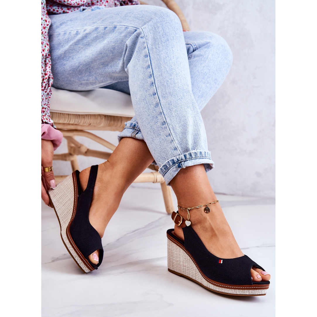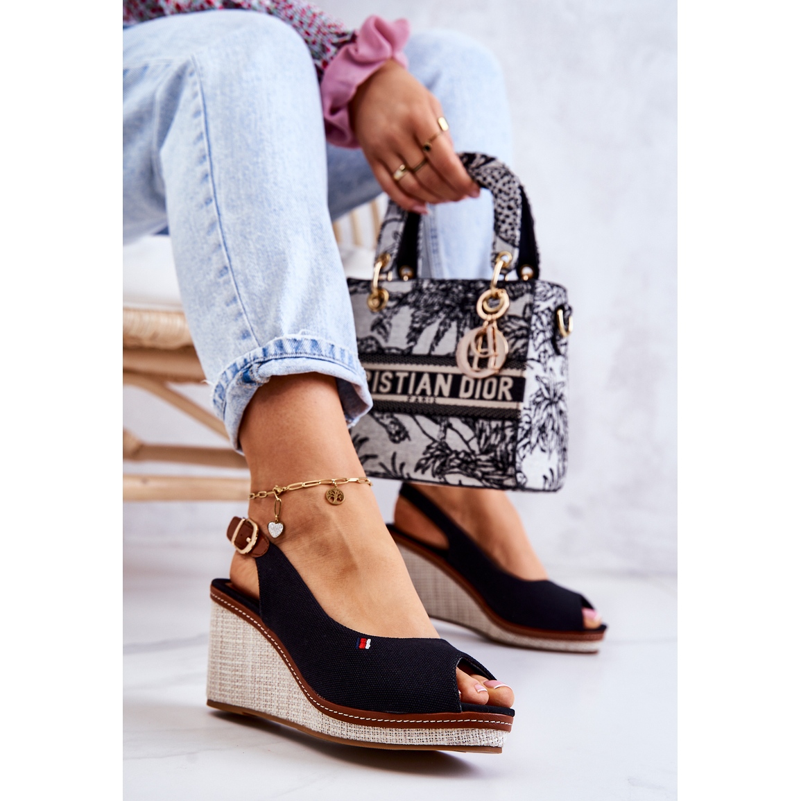 Une cale de 8 cm de haut ajoute de l'élégance tout en assurant la stabilité, ce qui en fait un choix parfait pour les journées d'été et les occasions spéciales. Le talon et la pointe ouverts soulignent la nature légère des chaussures, et la couleur noire universelle rend les sandales faciles à combiner avec une variété de styles.