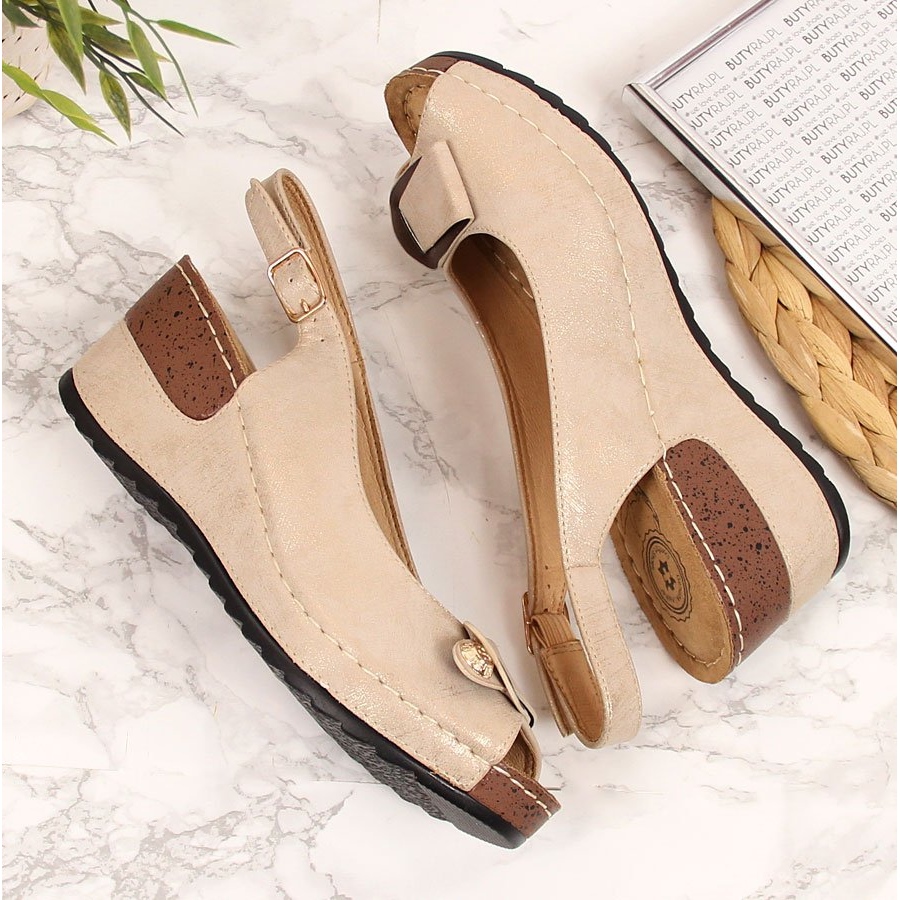 - Modèle: Sandales compensées beiges confortables avec brillant