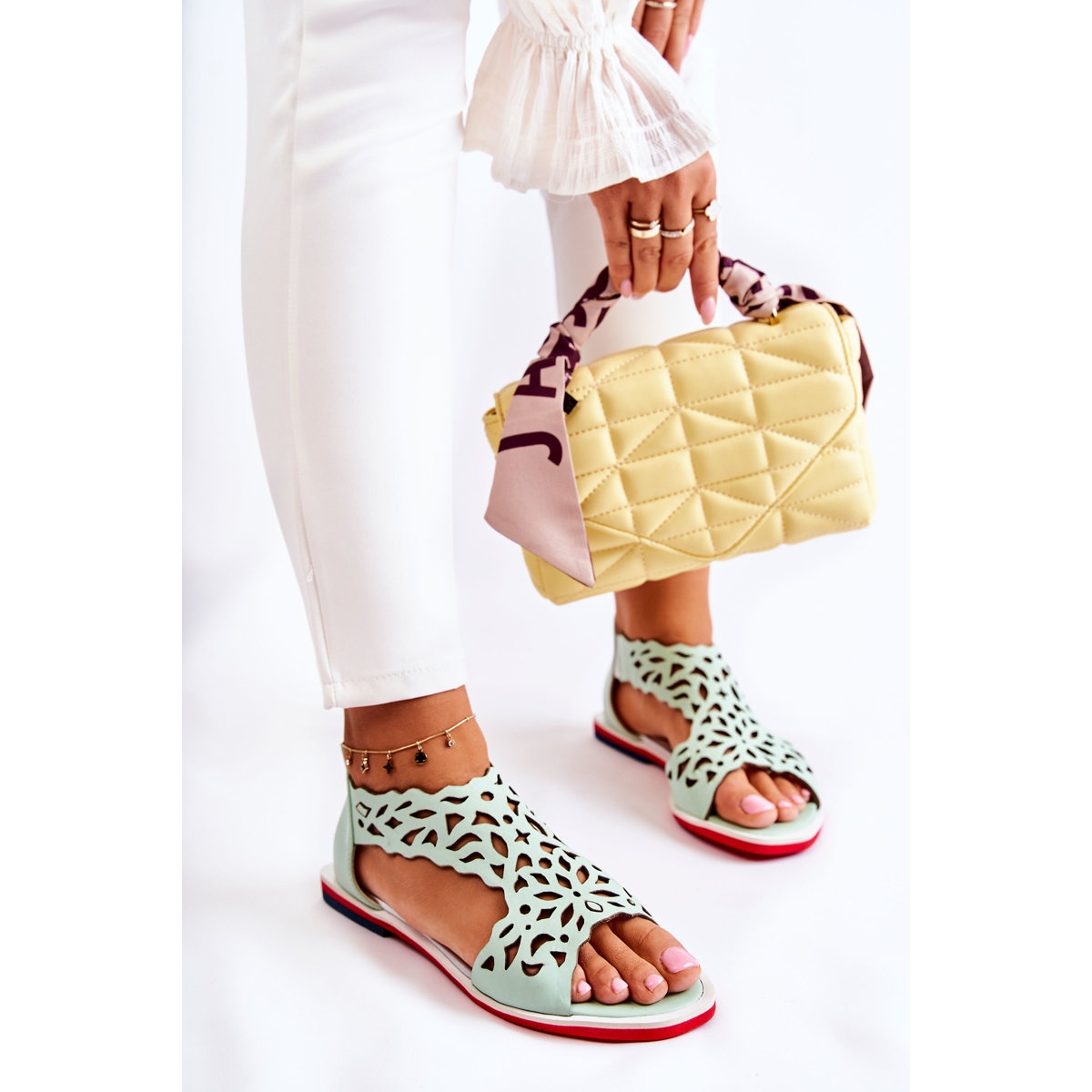 Détails: PA2 Sandales Cuir Ajourées Vert Clair Alima
