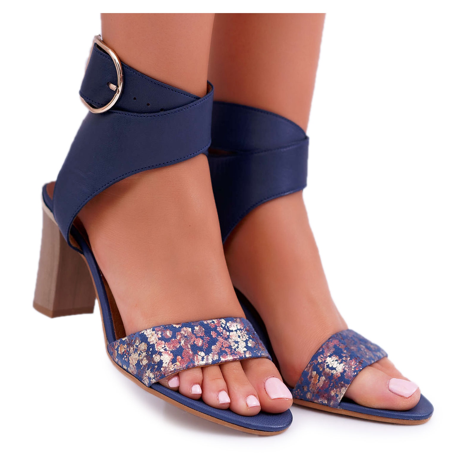 Détails: Sandales Cuir Femme Maciejka Sur Un Talon Bleu Marine 03597