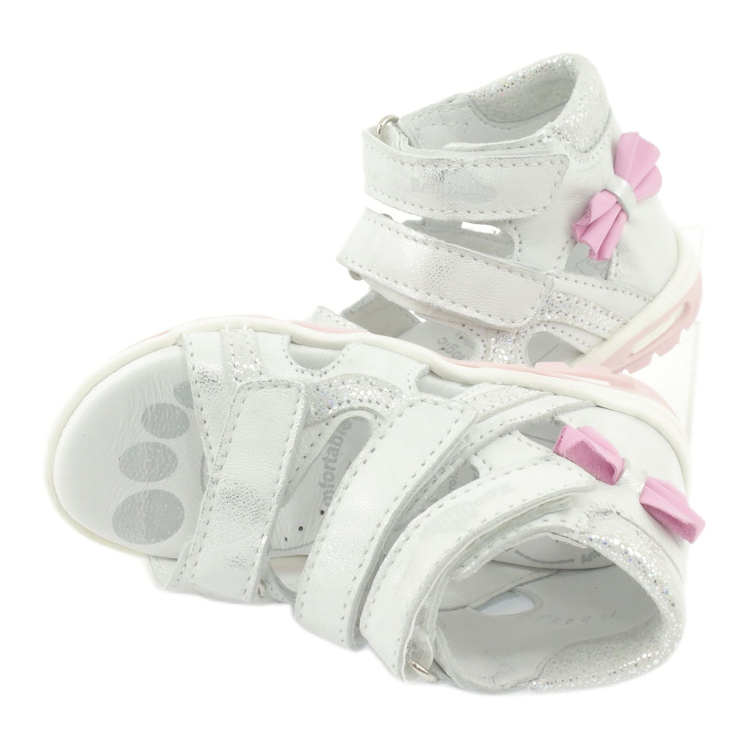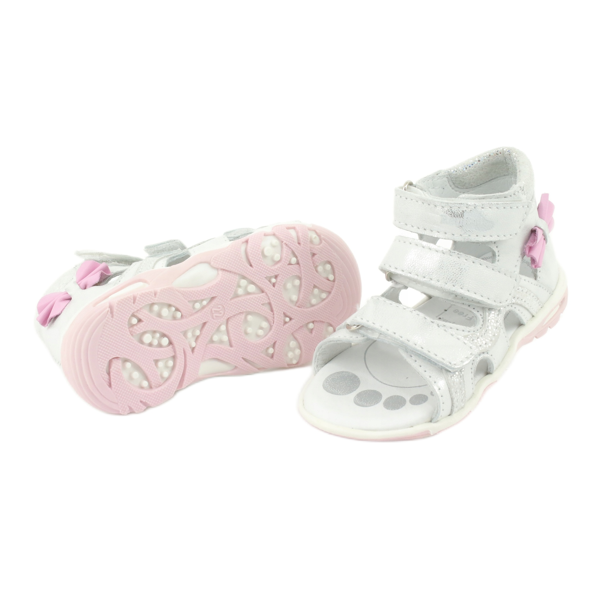 Sandales Ren But élégantes et confortables, modèle 1489, d'une couleur blanche subtile avec des reflets argentés. Parfaits pour l'été, ils allient la durabilité du cuir naturel au soin de la santé des pieds et au confort de l'enfant au quotidien.