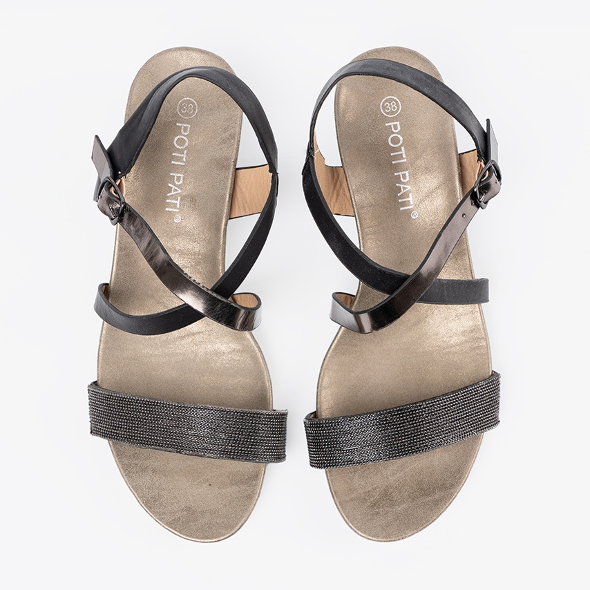 Détails: Shelvt Sandales de coin noir avec une sangle décorée le noir