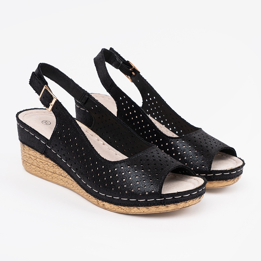 Ces espadrilles avec un talon ouvert sont un véritable succès à la mode féminine. Fabriqués en cuir en daim écologique de haute qualité, ils sont non seulement esthétiques, mais aussi extrêmement durables. Le motif ouvert leur donne la légèreté, grâce à laquelle ils deviennent le choix parfait les jours chauds. L'insert en cuir naturel garantit un confort tout au long de la journée, et la hauteur du talon de 6 cm façonne parfaitement la silhouette, sans abandonner la commodité.