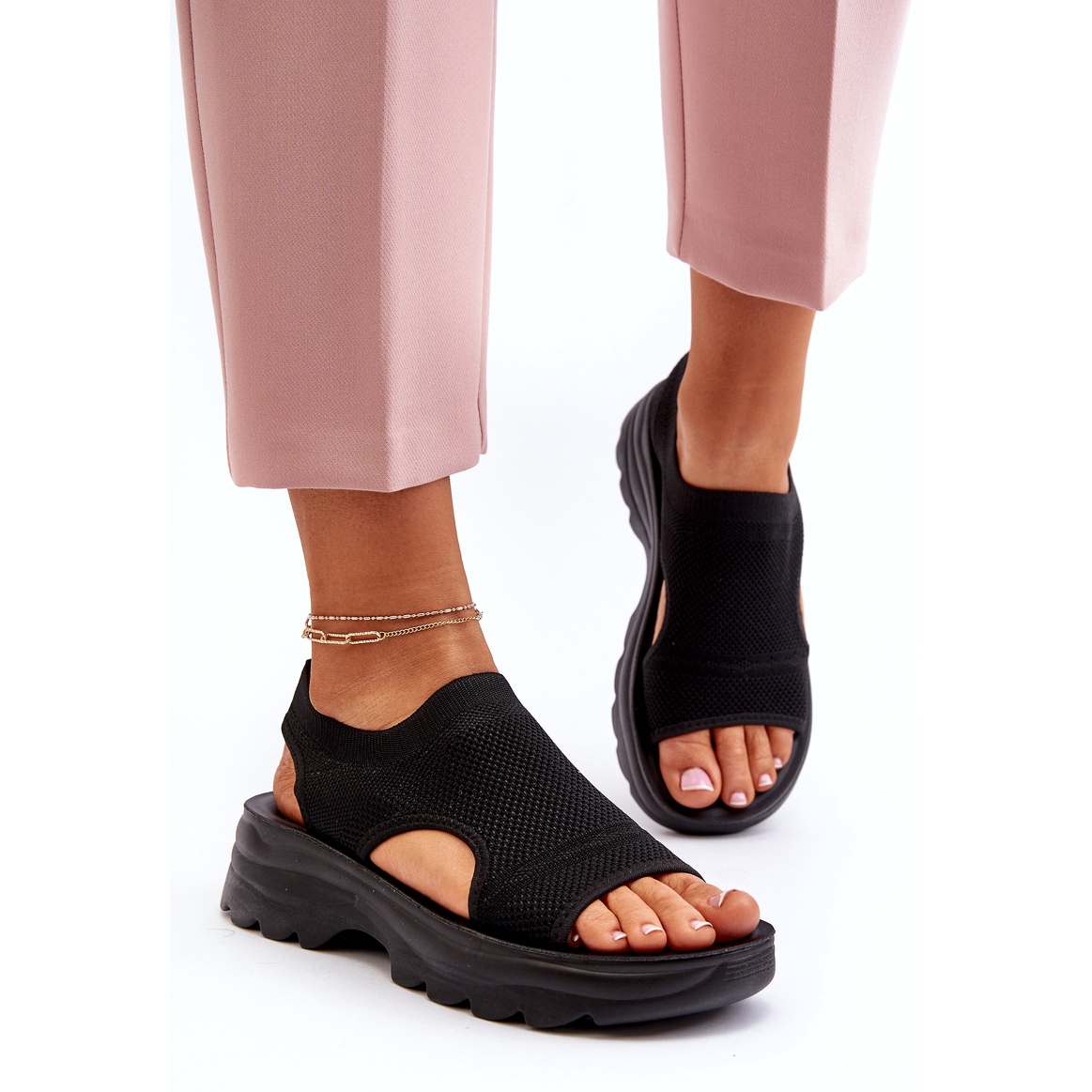 Découvrez le style sportif et le confort en été avec nos sandales sportives sur une semelle épaisse dans une couleur noire élégante. Ces sandales sont le choix parfait pour les femmes actives qui apprécient chaque jour l'apparence à la mode et le réconfort.