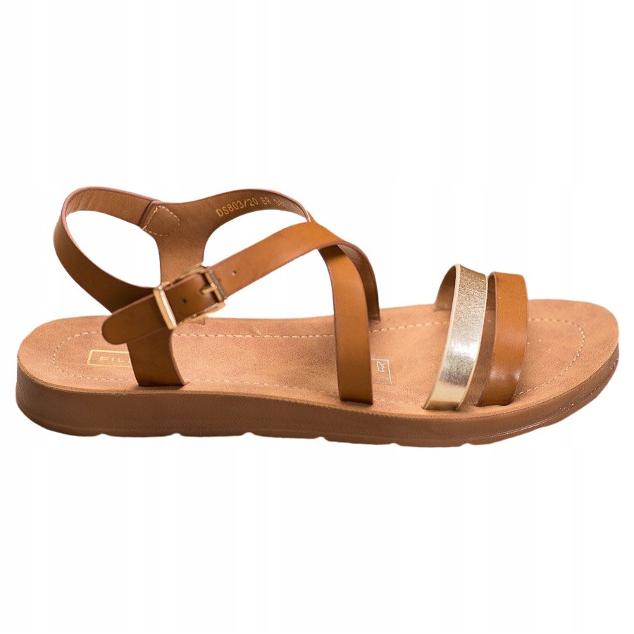 Découvrez l'élégance et le confort avec les sandales Filippo Casual marron avec une bride dorée. Ces délicates sandales pour femmes, en cuir écologique, sont le choix parfait pour le printemps et l'été.