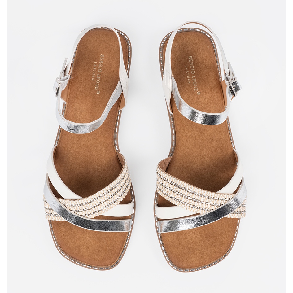 Les sandales des femmes blanches sur une semelle plate de Sergio Leone sont un excellent choix pour les femmes qui veulent combiner le confort avec l'élégance dans les stylisations d'été. Ces sandales classiques avec un talon ouvert sont parfaites pour les jours chauds, ajoutant la légèreté et le style à chaque tenue.