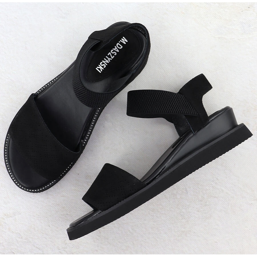 Détails: Sandales des femmes en fossé bas de Suede Black M. Daszyński MR2267-8 le noir