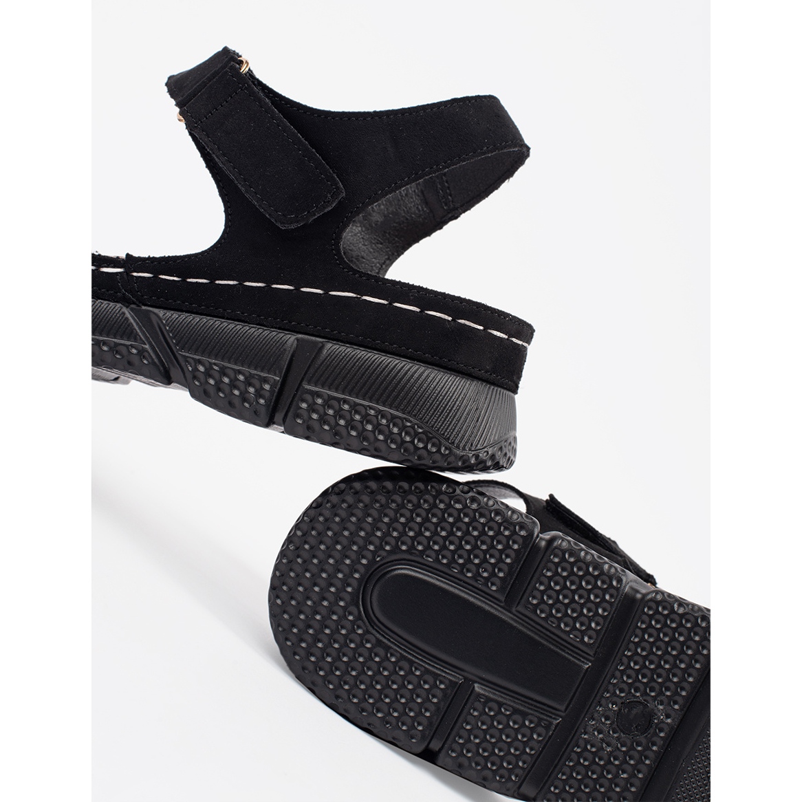 Pratiquement attachés au fermeture scratch, ces sandales facilitent la mise en place et vous permettent de faire correspondre avec précision la forme du pied. La couleur noire classique signifie qu'ils correspondent à diverses tenues - des robes aérées aux jeans décontractés.