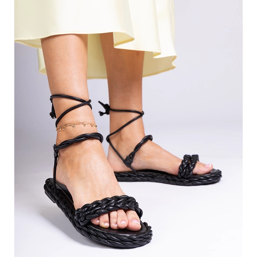 La couleur noire fait que les sandales se mélangent parfaitement avec diverses stylisations - des tenues quotidiennes, à travers les plus élégantes, aux ensembles de vacances pour la plage. Un nez rond et un talon plat avec une hauteur de 2 cm garantissent le confort lors d'une longue usure, ce qui en fait le choix parfait pour les jours chauds.
