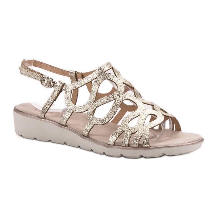 Les sandales Kylie sont le choix parfait pour les femmes à la recherche de chaussures d'été à la mode et confortables. Leur couleur dorée les rend parfaits dans les styles décontractés et élégants. Fabriqués en cuir écologique de haute qualité, ils garantissent durabilité et look élégant. De plus, la semelle intérieure en textile assure une ventilation adéquate du pied, ce qui rend les chaussures confortables même en cas de port prolongé.