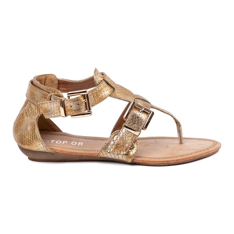 Détails: Sandales dorées dans le style du japonais avec des boucles