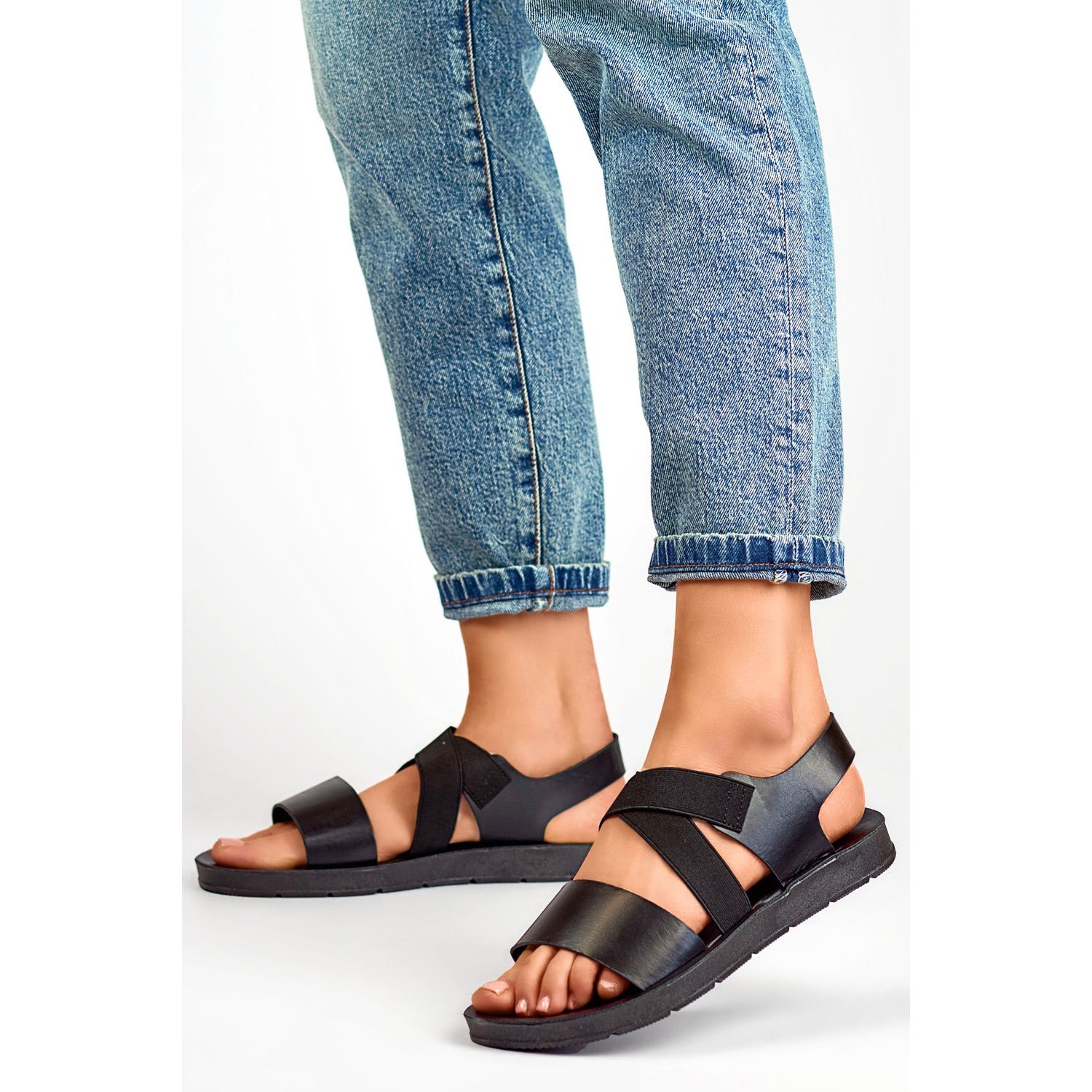 Détails: Sandales élastiques noires avec tige ajustée et bande élastique