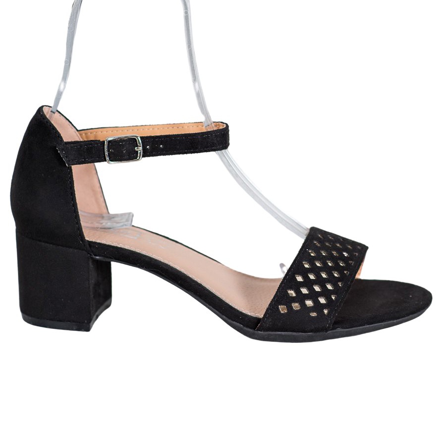 La partie supérieure des sandales est en cuir suédé écologique, ce qui leur confère un look subtil et élégant. Le confort de port est assuré par un talon bloc de 5,5 cm de haut, qui stabilise les marches et rend le modèle parfait pour une utilisation à long terme. Les sandales sont fermées par une boucle délicate, qui souligne encore davantage leur caractère sophistiqué.